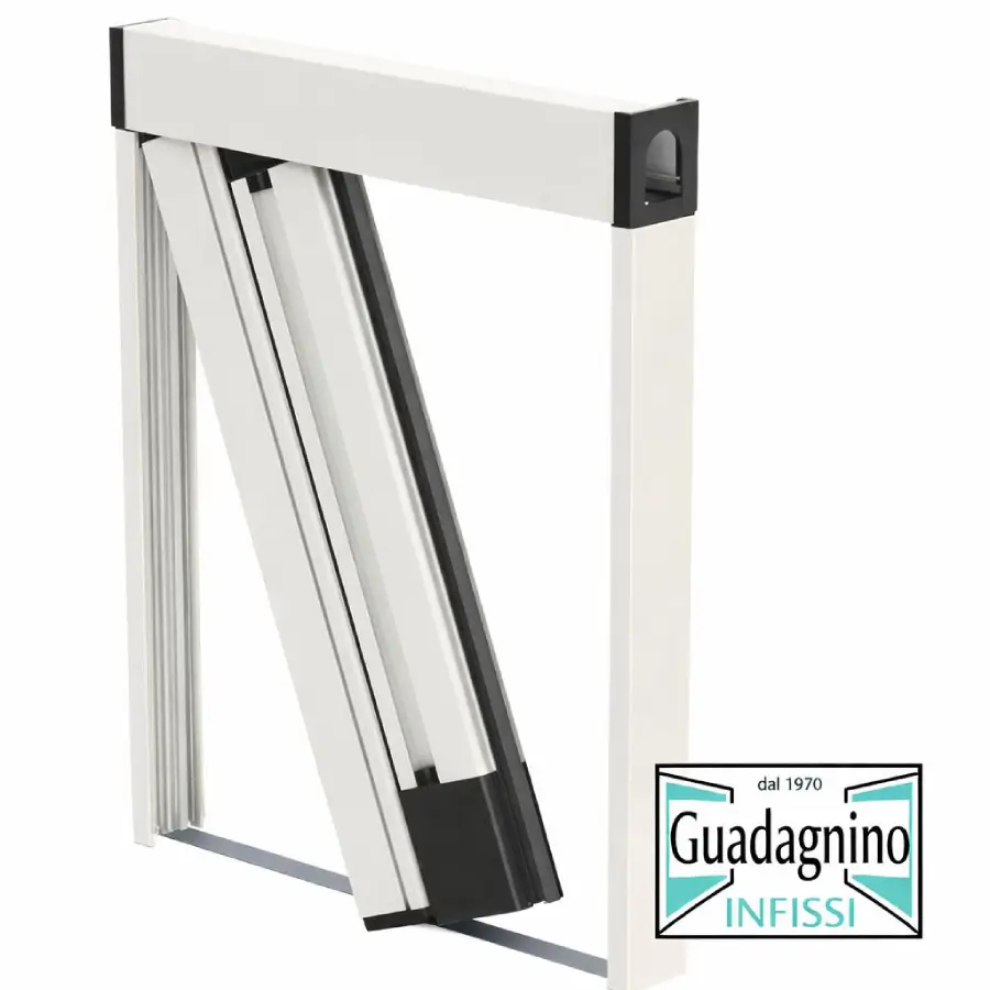 Zanzariera antivento a scorrimento laterale con rete avvolgibile
