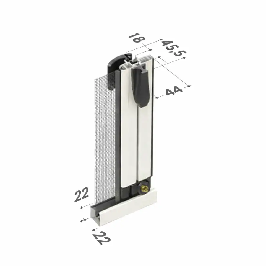 Zanzariera laterale a rete avvolgibile senza bottoncini, con azionamento a molla